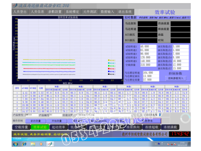 跑合試驗、空載排量試驗、效率試驗、起動效率試驗、低速性能試驗、